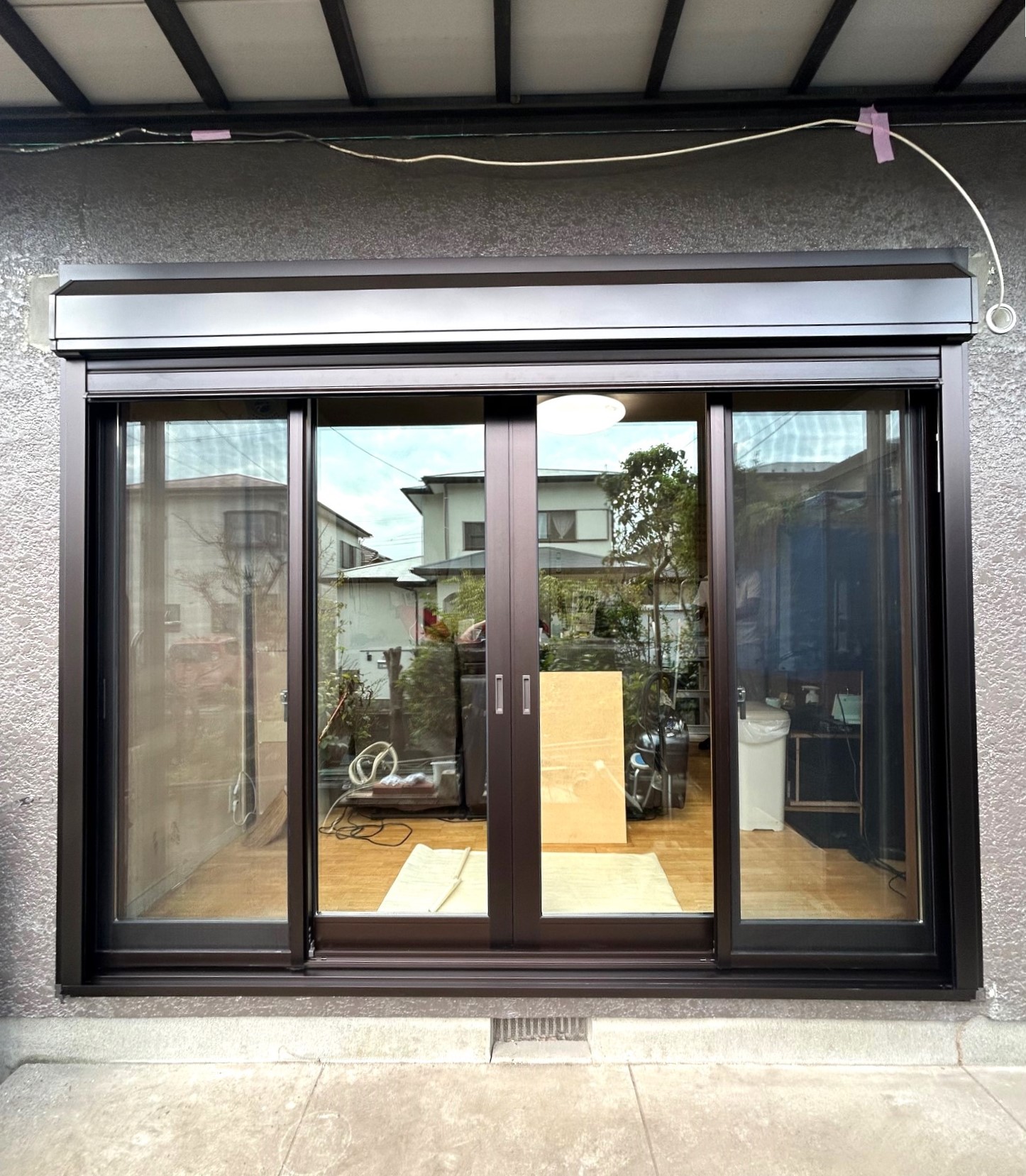 電動シャッター付サッシ窓工事と、外壁塗装をさせていただきました