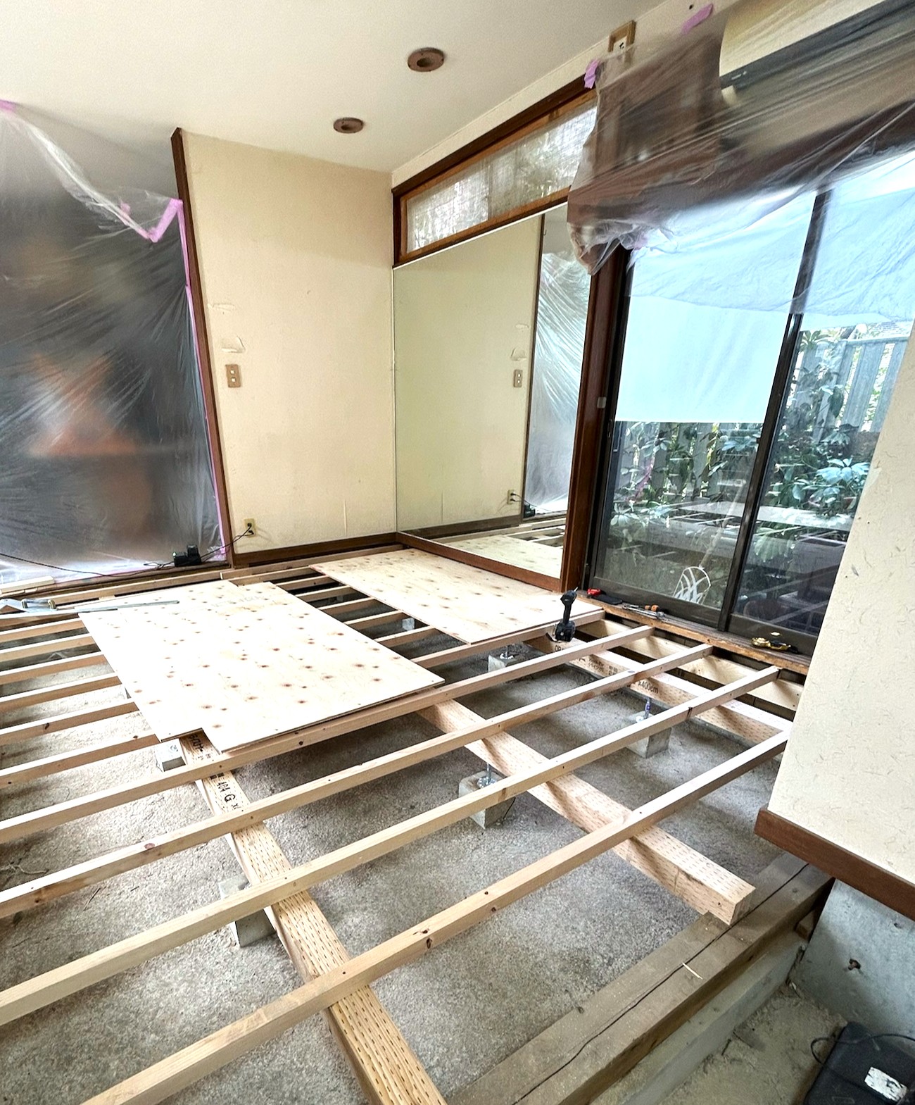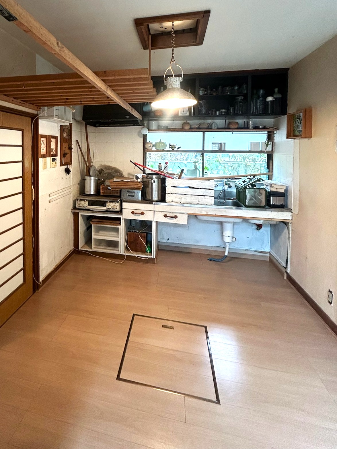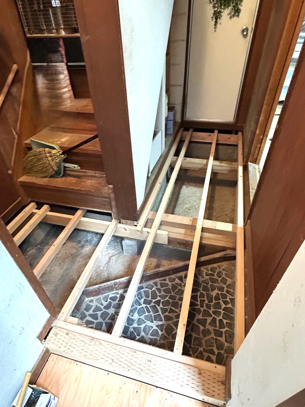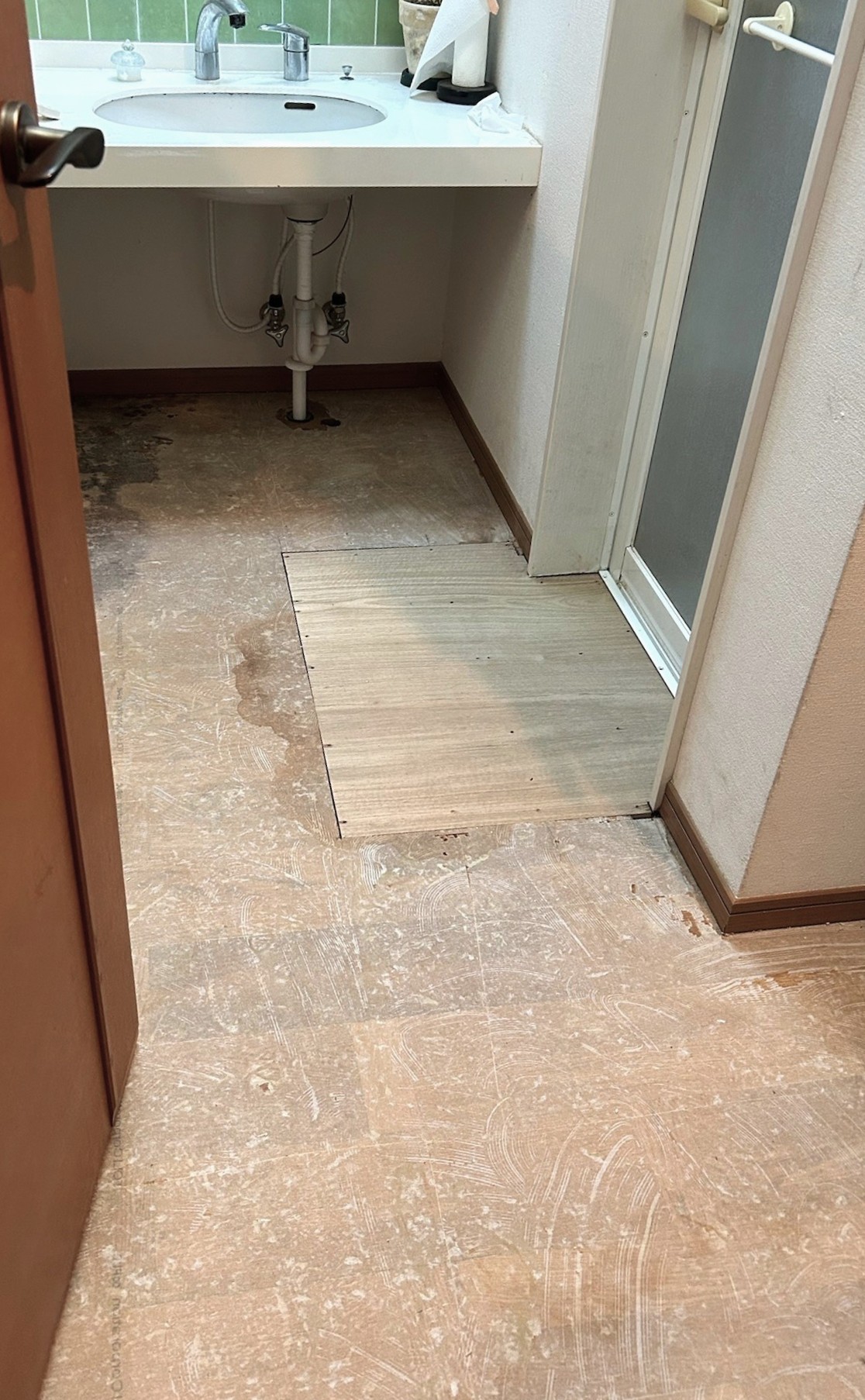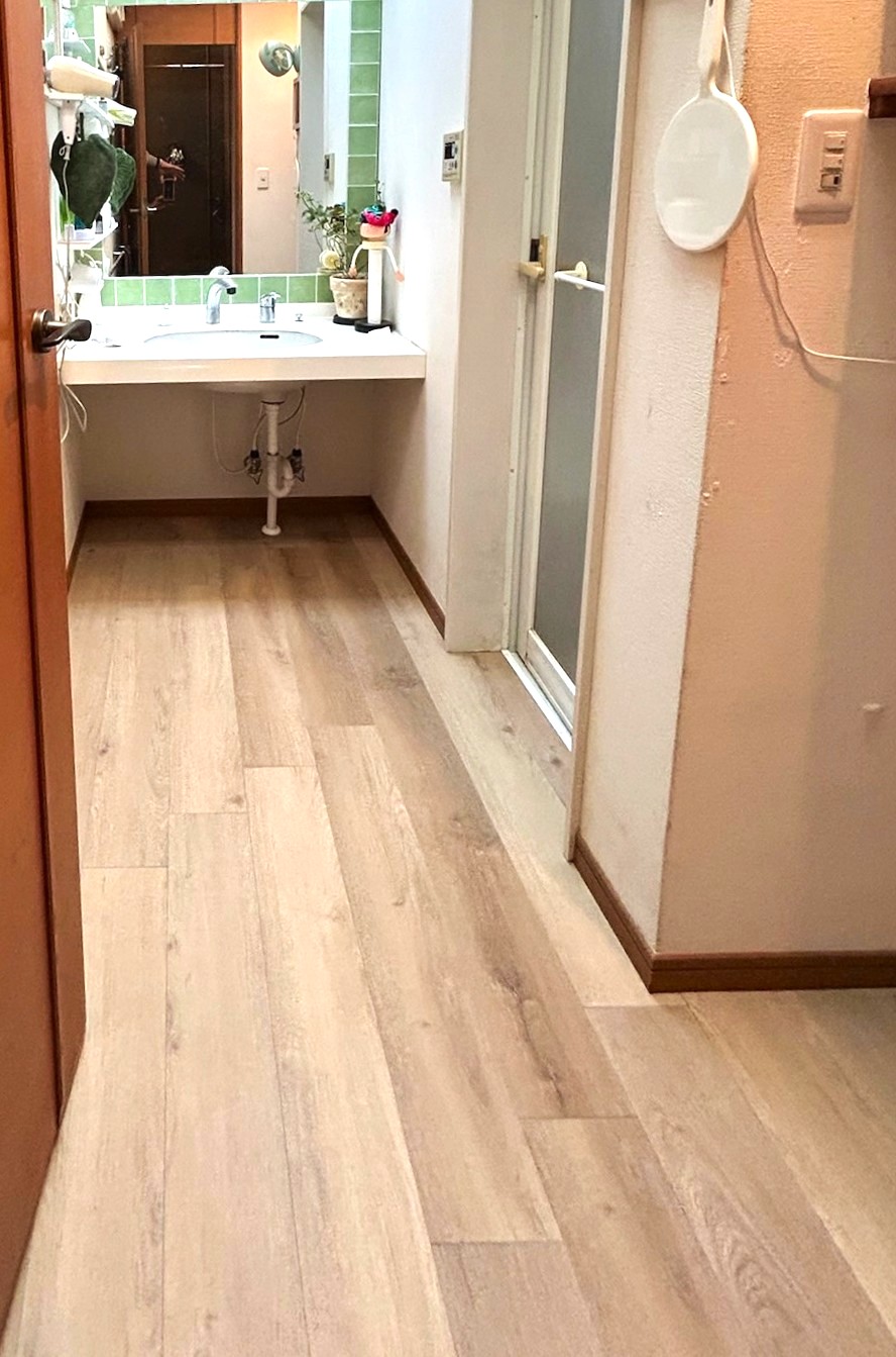 長くお住まいの戸建て、1階DK・洗面室・廊下フロアを下地からすべて改修、張替工事